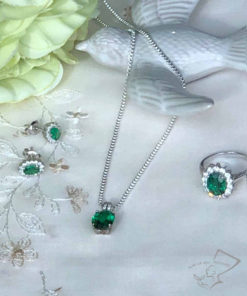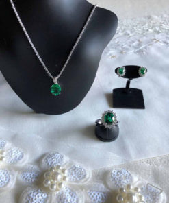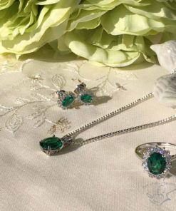 深みのあるロシアンエメラルド×キュービックジルコニアを使ったピアス