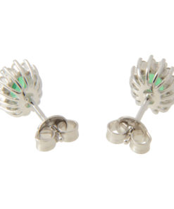 華やかな印象を与える鮮やかなグリーンのロシアンエメラルドを使用したピアス。