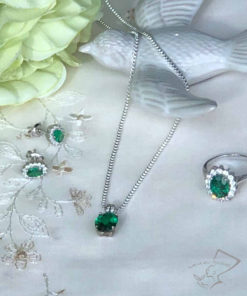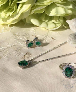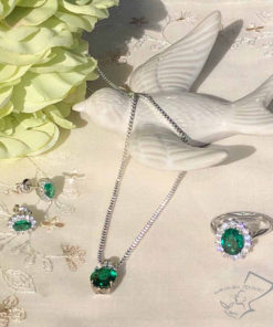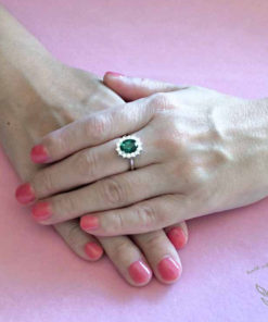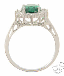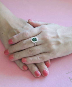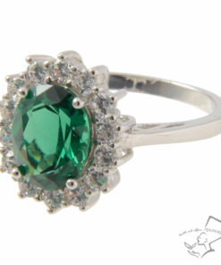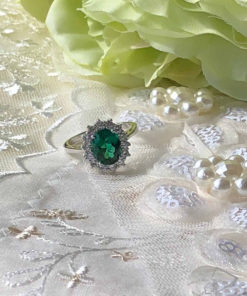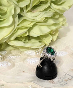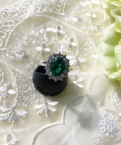 存在感たっぷりのロシアンエメラルドを引き立たせるように周囲にメレのCZをあしらったゴージャスなリング。