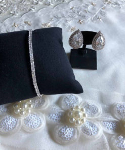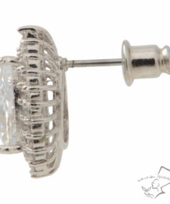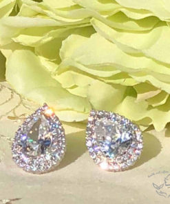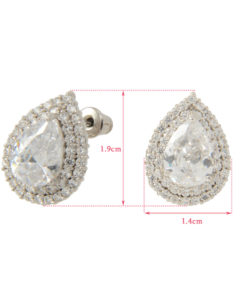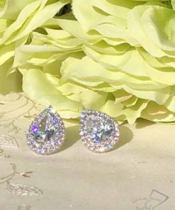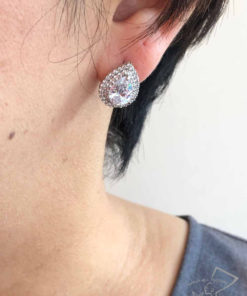 しずく型にカッティングした大粒CZの周りに、メレのCZを2重にあしらうことでゴージャス感たっぷりに仕上がったピアス。
