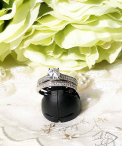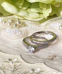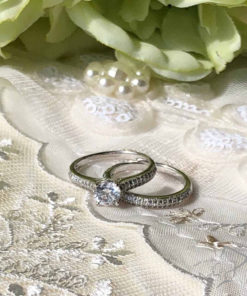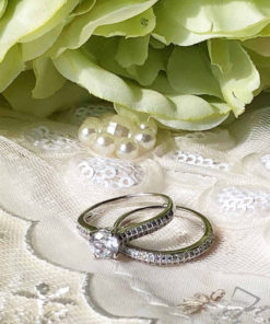 ゴージャスな一粒CZ×メレのCZのリングとメレCZのセットリング。